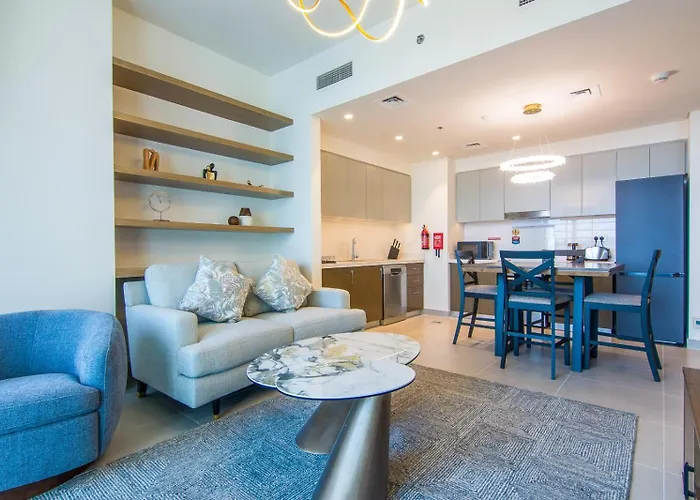 En este apartamento hay una cocina bien equipada con un lavaplatos, una nevera y un horno. El aeropuerto Dubai Creek SPB está a 20 minutos en coche, y la parada de autobús The Dubai Mall, a tan solo 1 km del apartamento.
